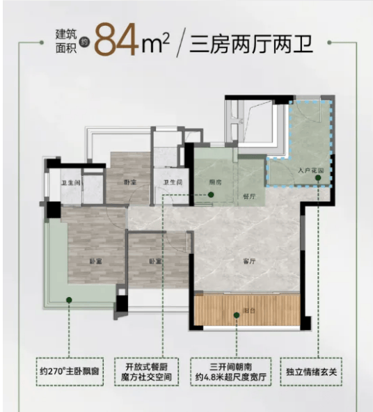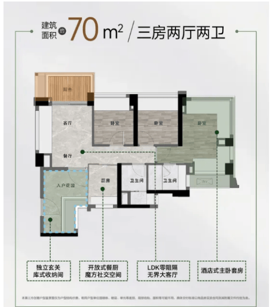 项目正在售的70~142㎡3~5房均为精拆交付,从项目出发,是区域内少见的超大型分析性社区。
