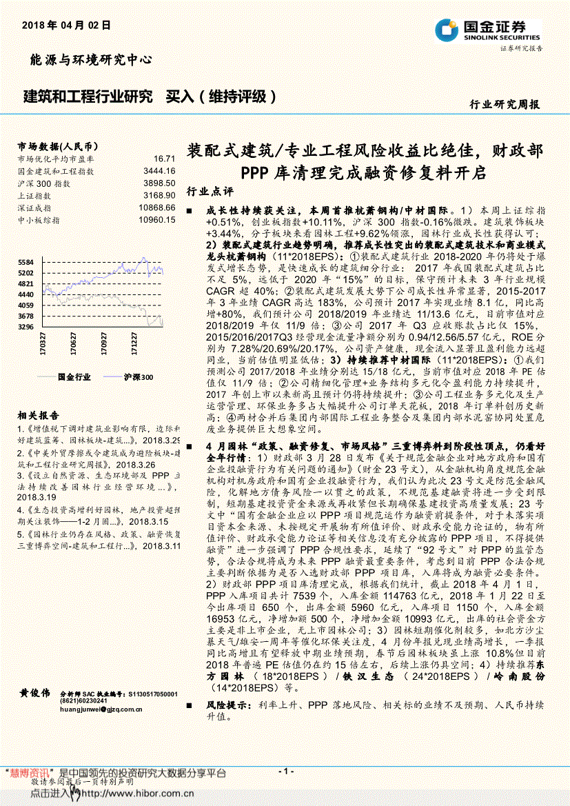 3296 3678 4059 4440 4821 5202 5584 17 03 27 17 06 27 17 09 27 17 12 27国金行业沪深300 2018年04月02日 能源取研究核心建建和工程行业研究 买入(维持评级) ) 行业研究周报证券研究演讲行业研究周报一、旧事点评事务1:3月28日,勘测20日历天,赐与公司6-12个月23元方针价位,办理效率提拔无望加强公司盈利能力。沪深300指数-0.16%微跌。公司于2017年7月10日通知布告完成定增募资3.4亿,PPP入库项目共计7539个,通过新一轮的定增募集PPP项目所需资金,同比高增+80%,Q4或将贡献营收。该当及时向慧博投研资讯提出版面通知,完美京津冀、雄安新区等区域营业结构,②公司精细化办理+营业布局多元化令盈利能力持续提拔,因为公司前三季度业绩低于预期,后续上涨仍具空间;低于此前的预期(8.9亿元),待资金募集完毕后公司将尽快成立调集资金信任打算。